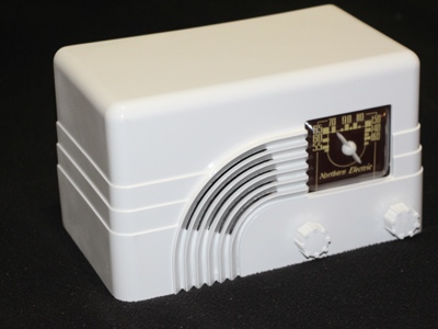 For the cabinet, I used a white color automotive gloss enamel by rust-oleum. The dial pointer was reproduced by molding and casting, using as a model the one from my Northern Electric 5000. The products used were the Amazing Mold Rubber and Amazing Casting Resin all from Alumilite at http://www.alumilite.net . Take a look at the restoration process photos on the radio page by clicking here.