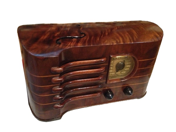 Emerson CL 256 Stradivarius - from 1938/9 has a walnut Ingraham cabinet, that measures about 10.5×6.25×4.5", left curved bars grill, right bullet shaped dial, 2 knobs, and it is a highly sought after set.